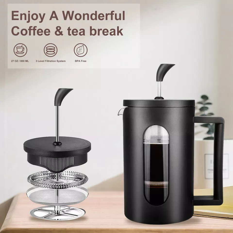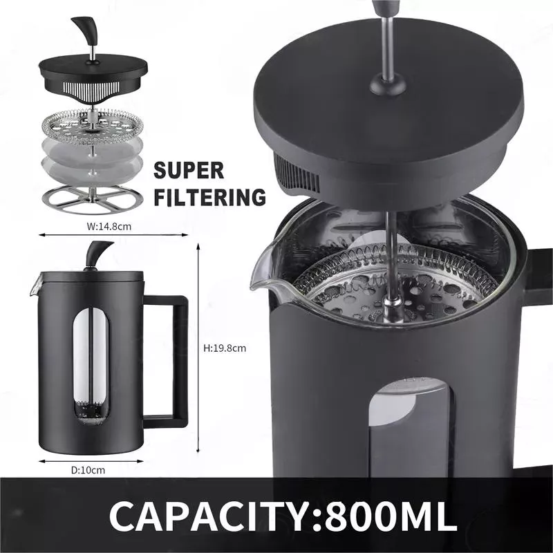 304 Stainless Steel Household High Borosilicate Glass Plastic French Press Tea Maker Coffee Maker