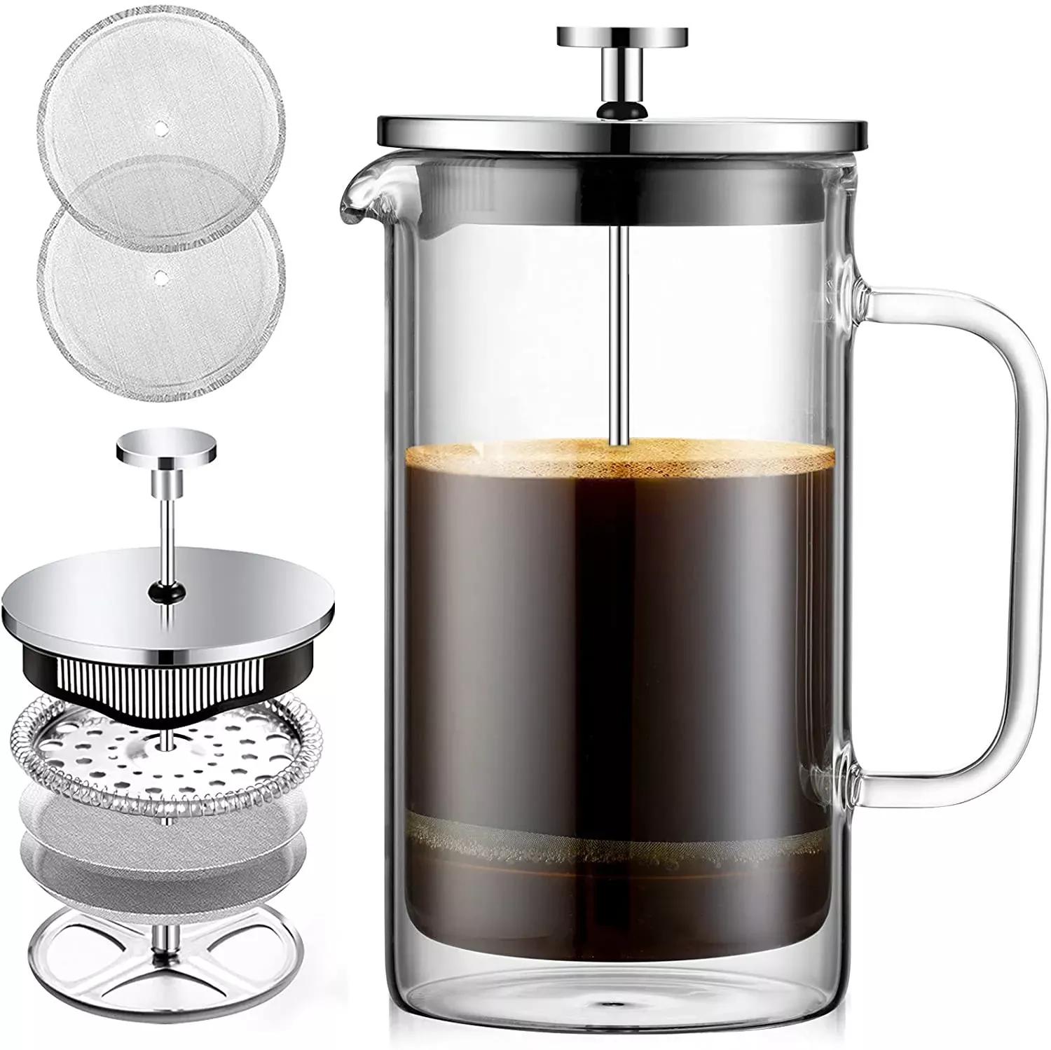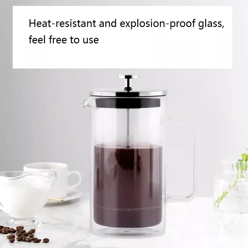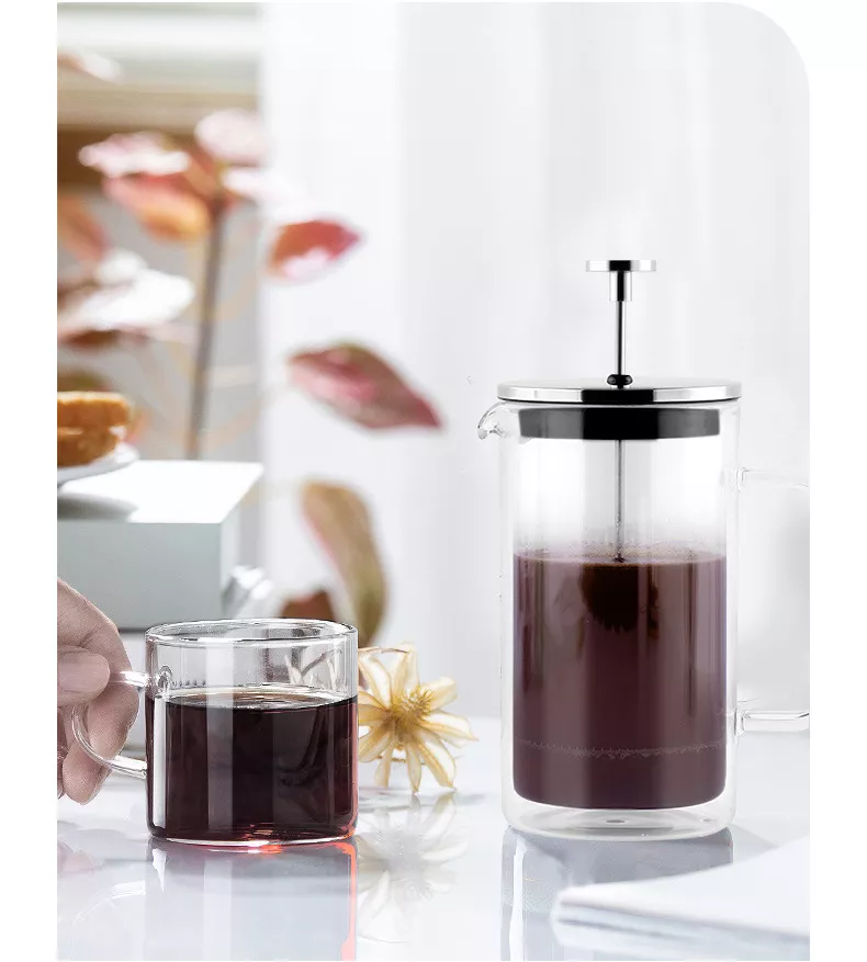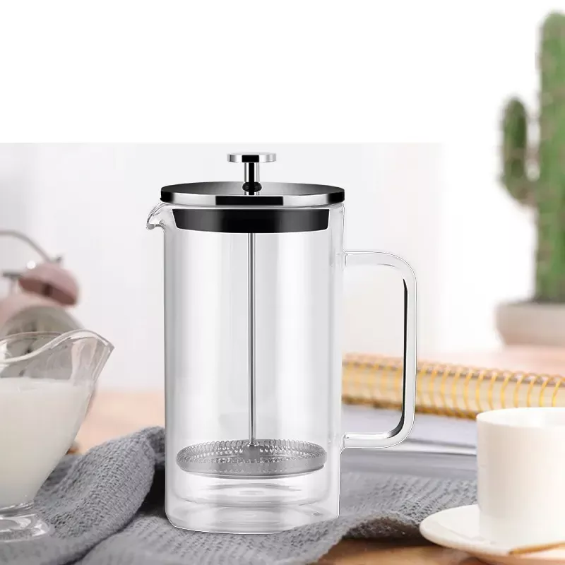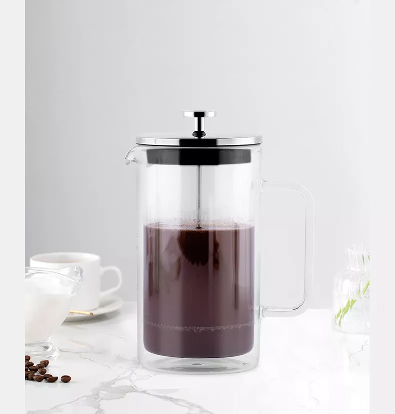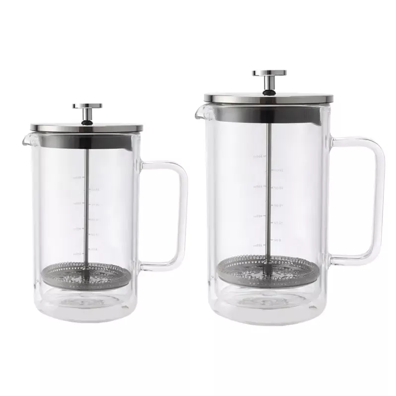 Cheap Price Classical Design Double Wall Glass Tea Pot 304 Metal Coffee French Press