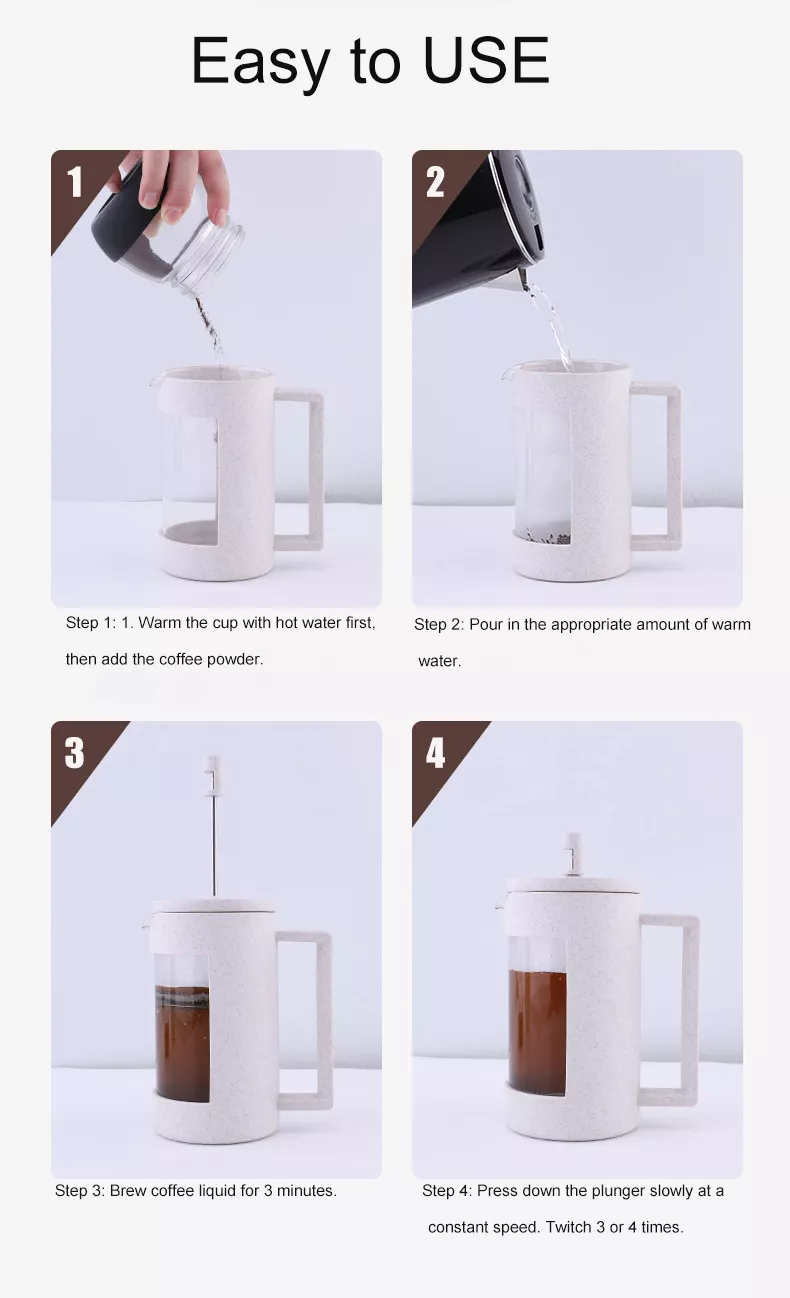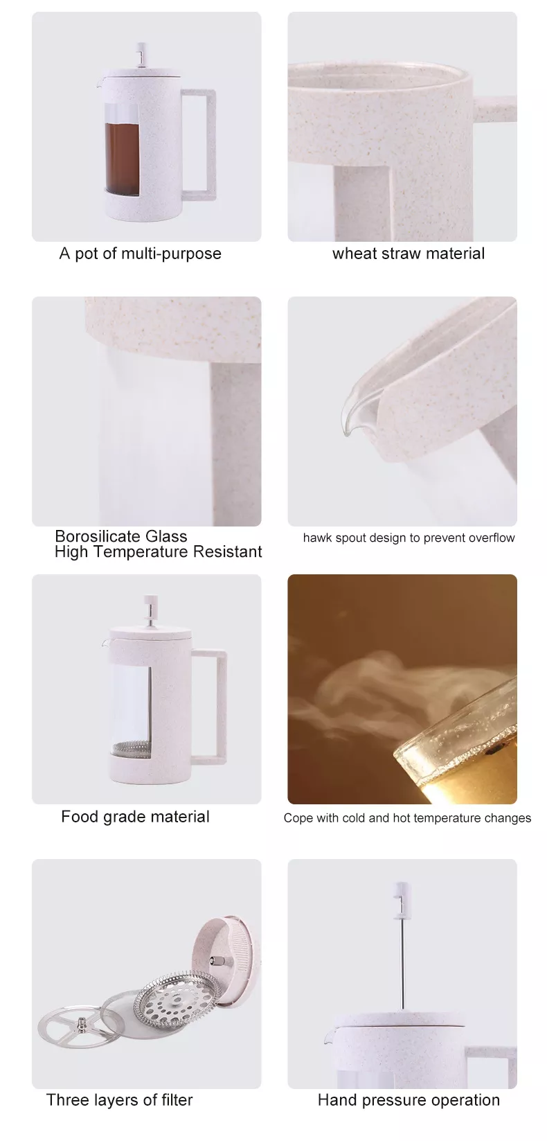 Factory Customized Coffee Pot 304 Stainless Steel Wheat Straw French Press