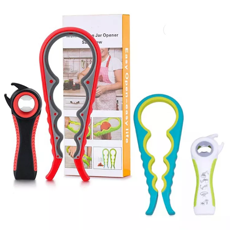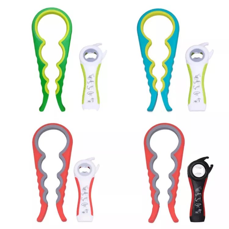 Jar Can Lid Opener, 5 in 1 Multi Function Can Opener Bottle Opener Kit with Silicone Handle