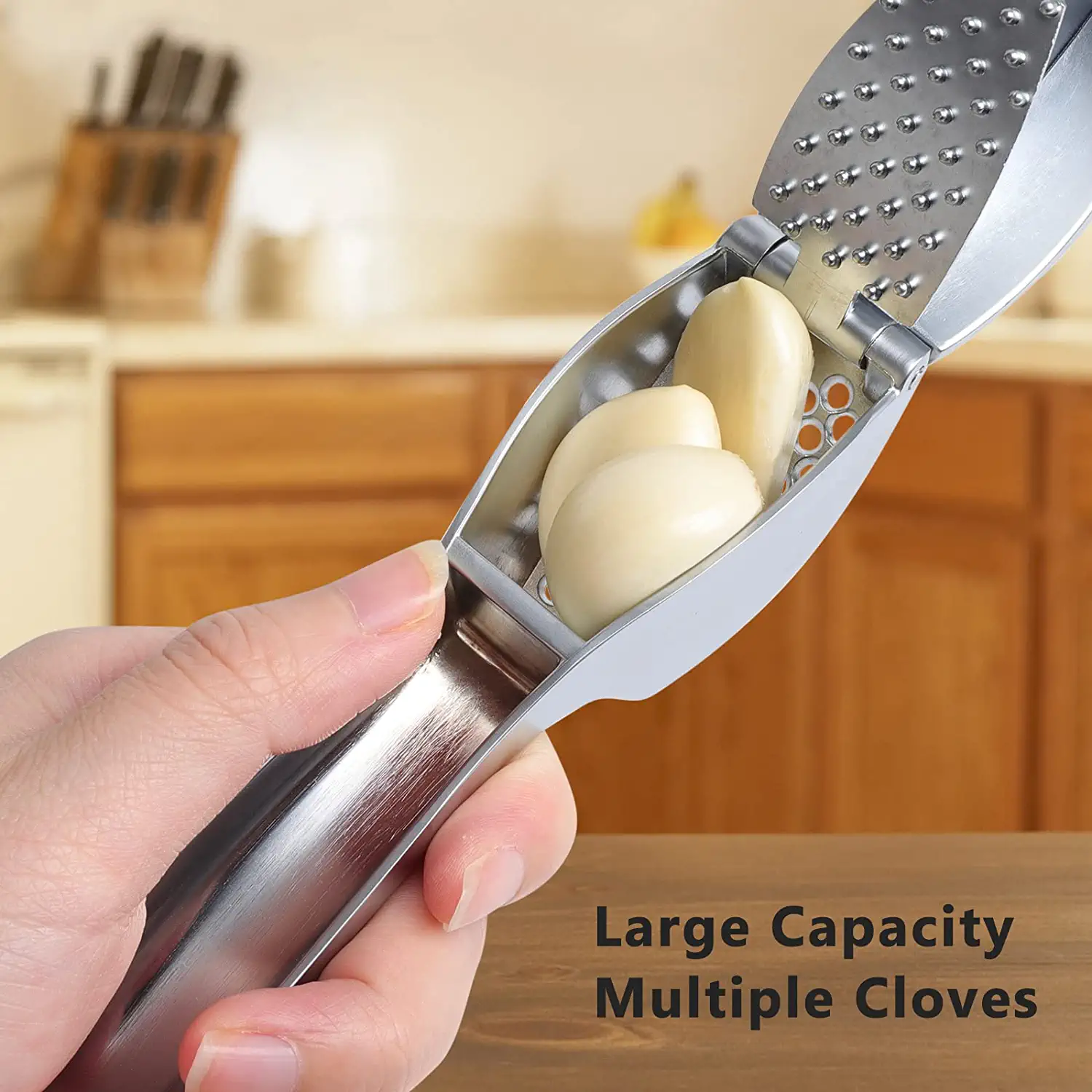 Large-capacity Zinc Alloy Garlic Presser,Silver