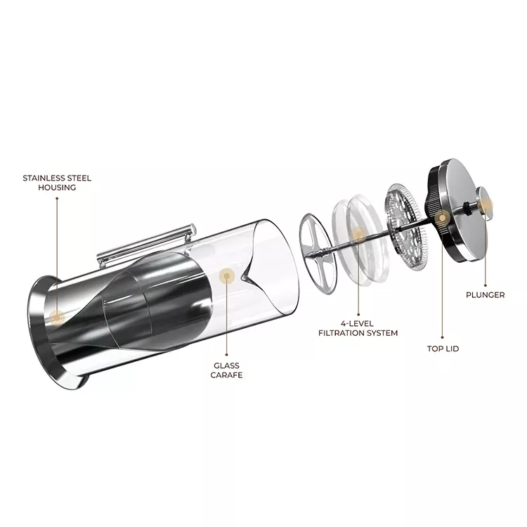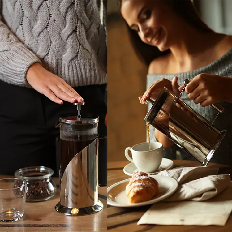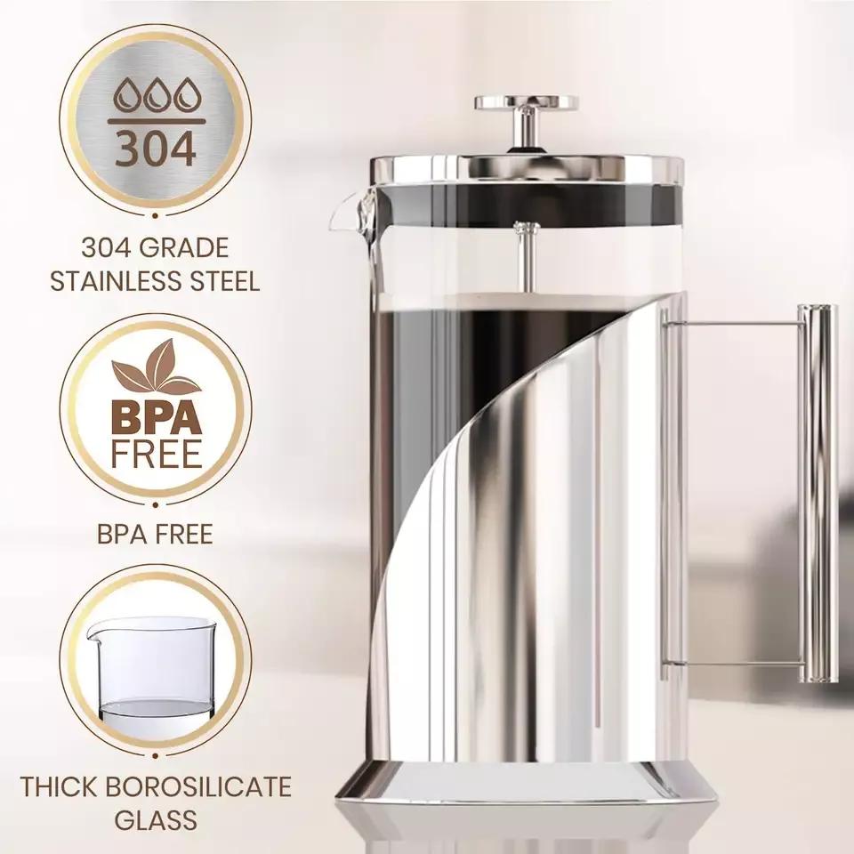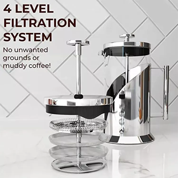 Large Display 34oz Stainless Steel Metal Tea Pot Coffee French Press