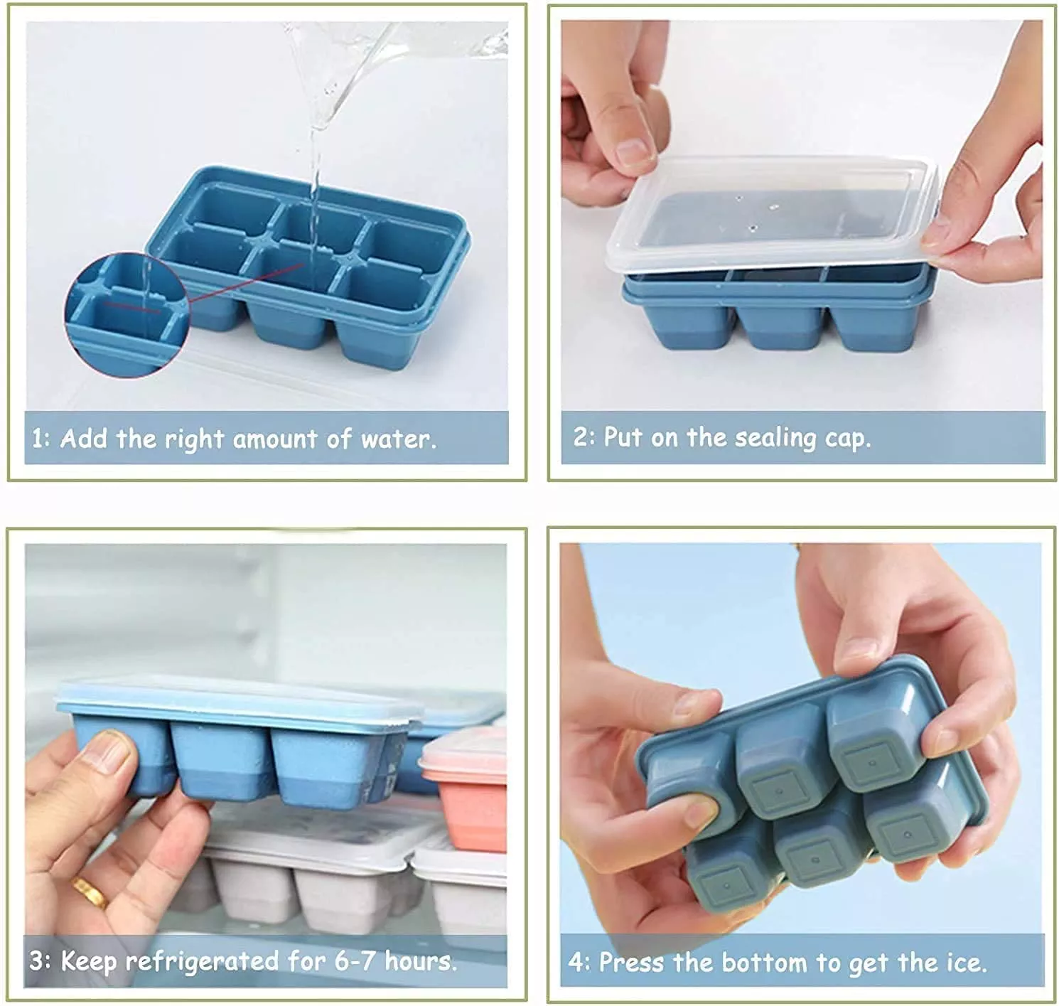 Large Size Silicone Ice Cube Molds with Removable Lids,Reusable and BPA Free for Whiskey, Cocktail, Stackable Flexible Safe Ice Cubes