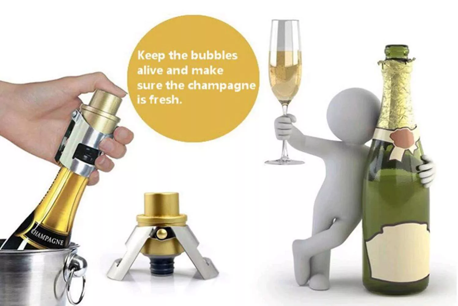 Stainless Steel Sparkling Wine Stopper with Pure Silicone Air Tight Seal