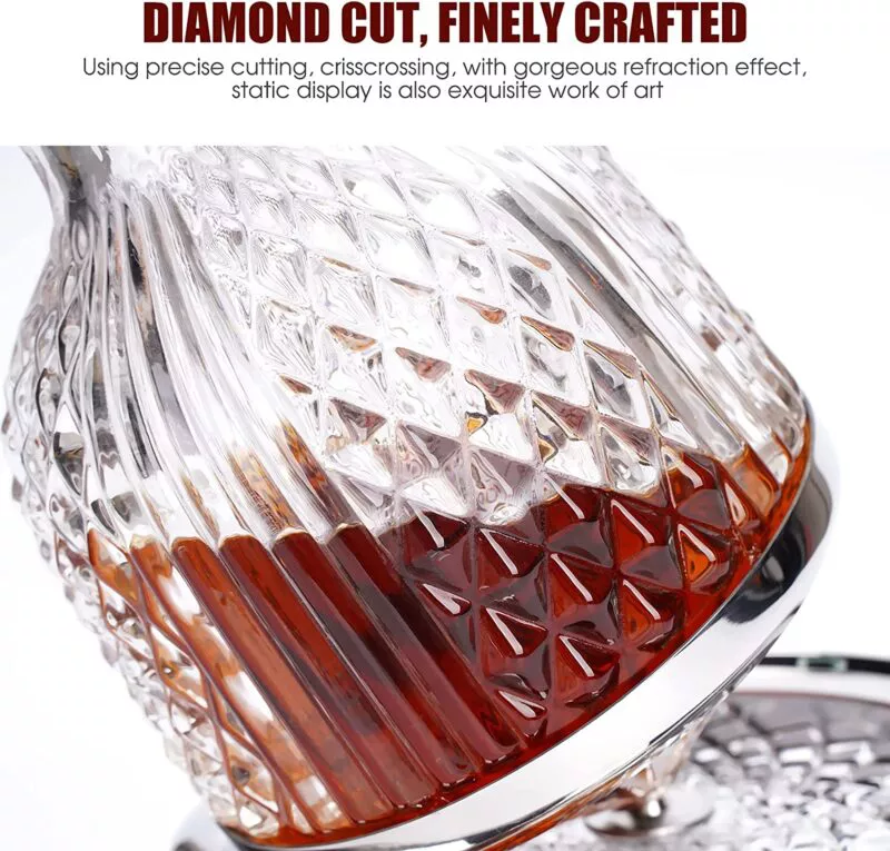 - 1500ml Material: Lead-free crystal glass+metal ring and bottom