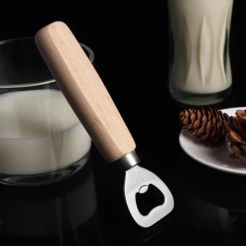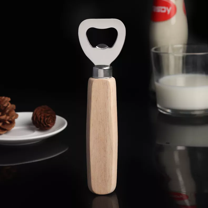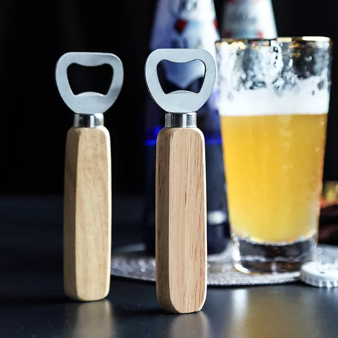 Wood Handle Metal Beer Wooden Bar Blade Bottle Opener With Keychain
