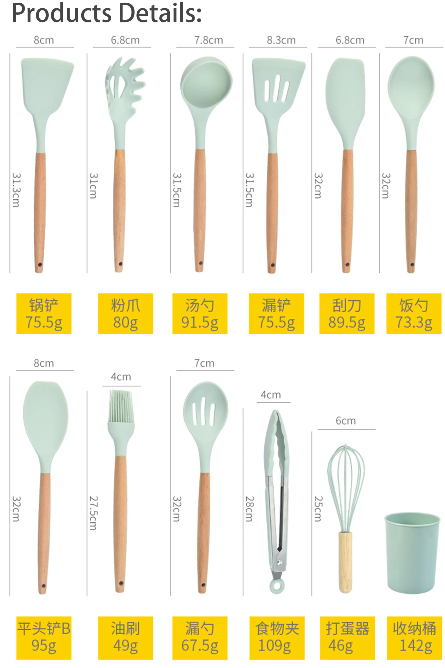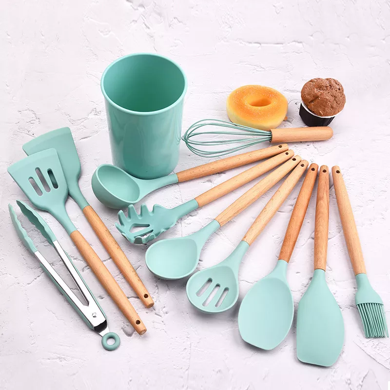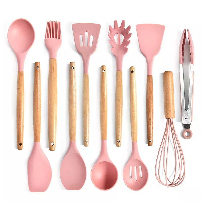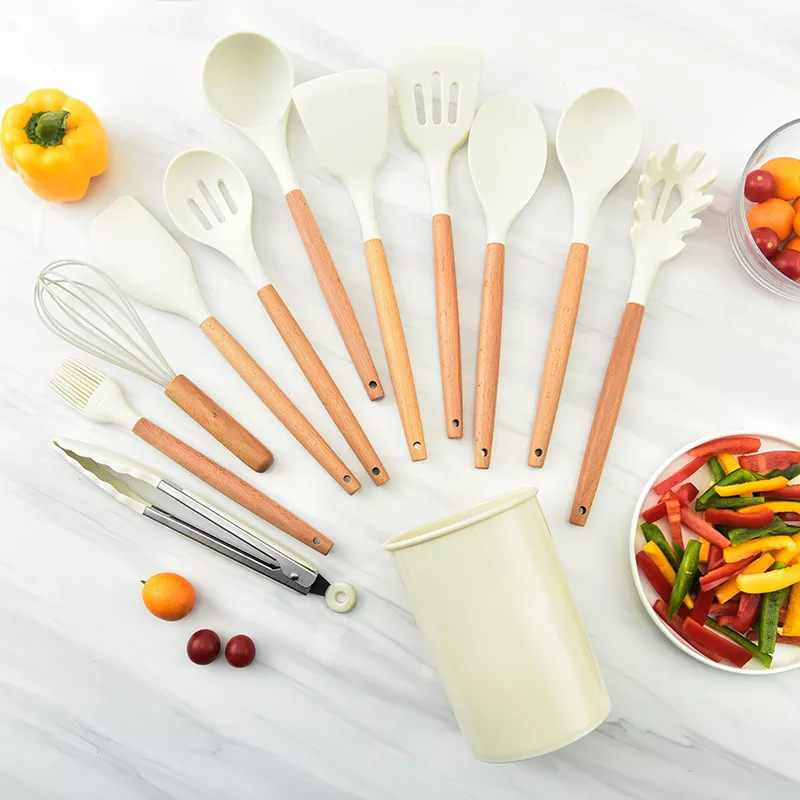 Wooden Handle Silicone Kitchen Gadgets Utensil Set
